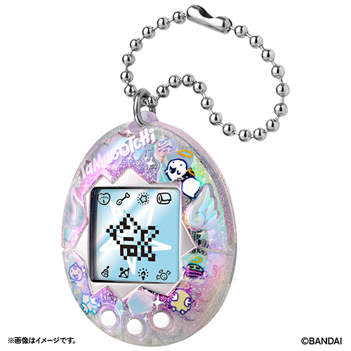 Created with love for Tamagotchi fans since the 1990s, the Celebration version joins the Original Tamagotchi lineup. The theme is “a mirror that reflects yourself.” It features a sparkling aurora shell with a motif of Tenshitchi characters and mirrors, plus holographic packaging. A pink-silver mirror charm is also included, making this a very special edition. It comes with the GEN3 program that lets you raise Tenshitchi characters like Kuriten.