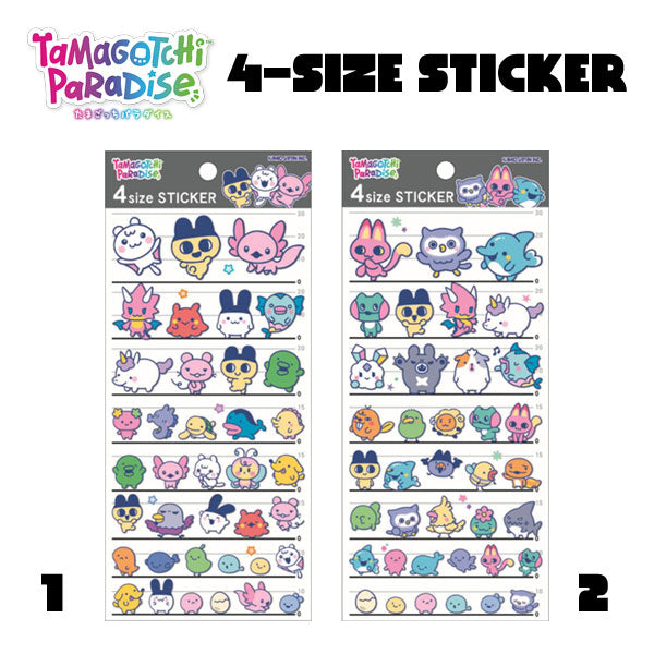 A fun sticker sheet featuring Tamagotchi Paradise characters in 4 different sizes — great for decorating notebooks, planners, phone cases, and more. Available in two design collections: Paradise A and Paradise B.
