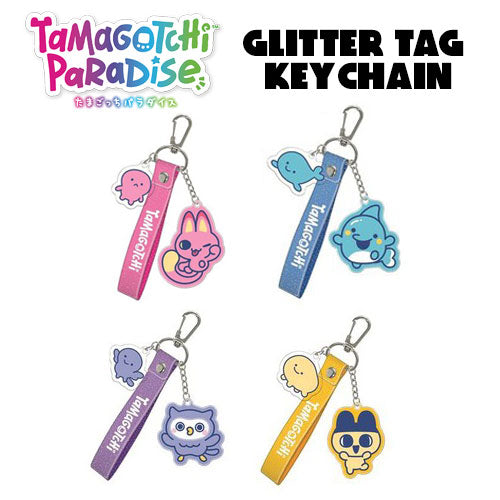 A large-format glitter tag keychain from the Tamagotchi Paradise item collection! Features a sparkling PVC strap tag with "Tamagotchi" branding and an acrylic character charm — cute enough for bags, backpacks, or anywhere you want to show off your favorite character.