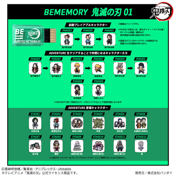 The contents are the same as "BEMEMORY Demon Slayer 01 01" included in the "VITAL BRACELET BE Demon Slayer Special Set" to be released through Premium Bandai.