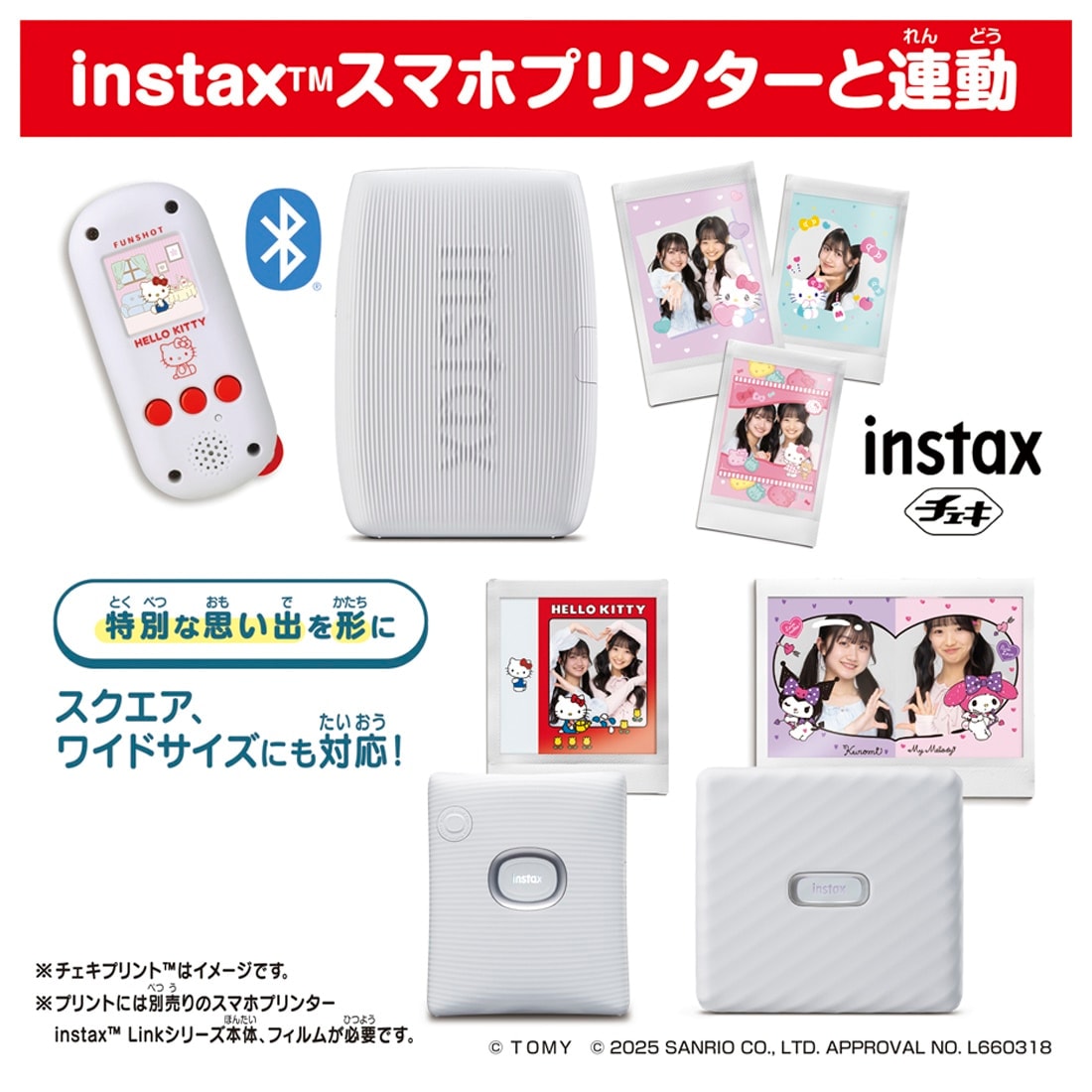 Compatible with the instax Link smartphone printer series (sold separately) to print both regular and decorated photos for keepsakes (requires separate printer and film)