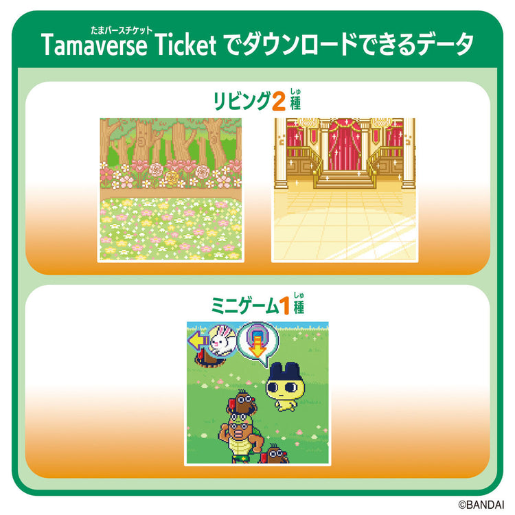 Presentamos el "Boleto Tamaverse para la Biblioteca de Cuentos de Hadas" de la serie "Tamagotchi Uni", ¡la primera serie de Tamagotchi con conexión Wi-Fi! Con este Boleto Tamaverse, podrás acceder al área de descargas desde el Portal Tama y explorar nuevas aventuras.