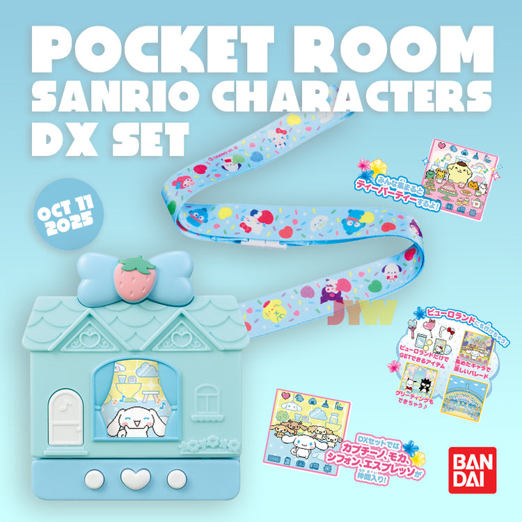 The popular Pocket Room now comes in a deluxe set with a cute neck strap! You can take care of 12 different characters, including Hello Kitty, Cinnamoroll, and Kuromi. Feed them, give them baths, and change their outfits. As friends move into the room, it becomes more lively, and you can even go on outings to Puroland.